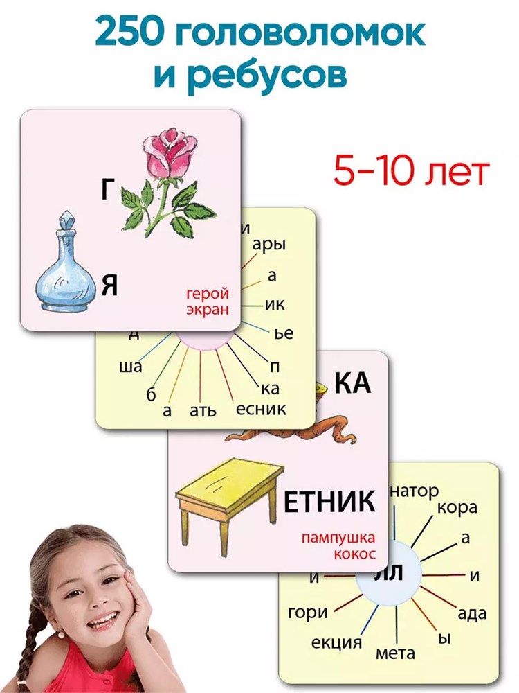 250 заданий — загадки, ребусы и составление слов