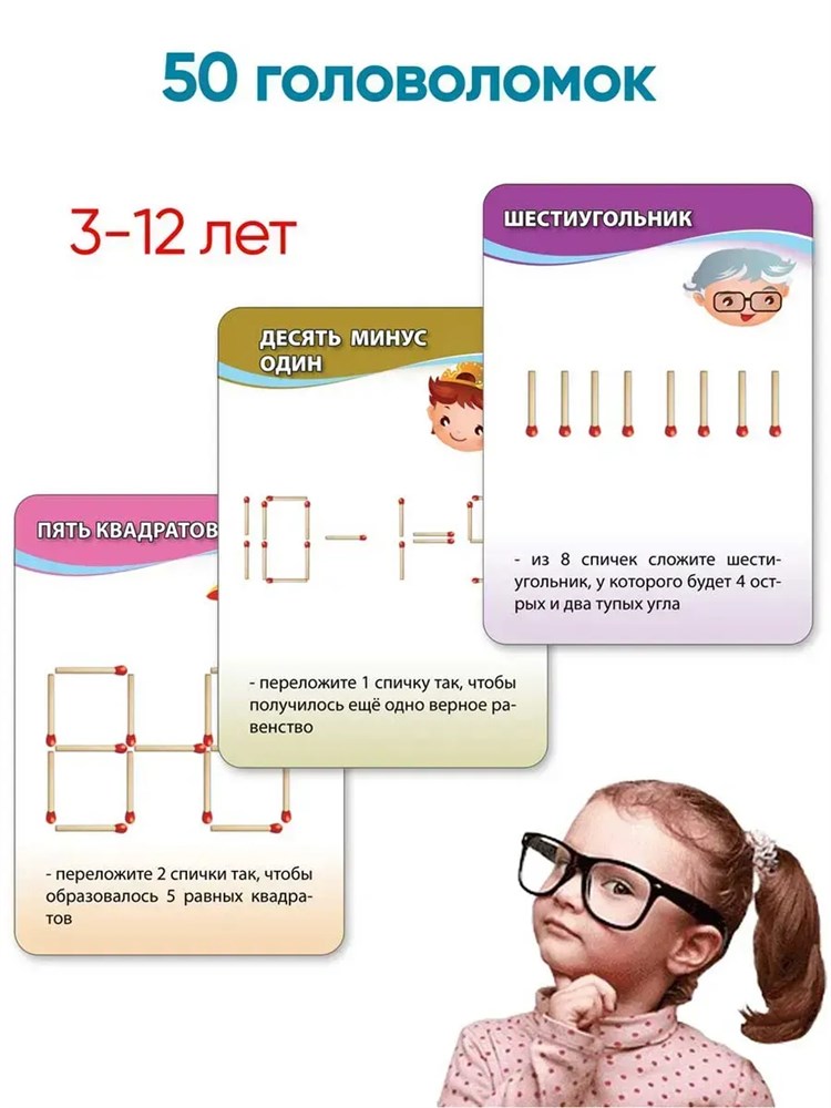"Головоломки из спичек" — это идеальный выбор для родителей, которые хотят совместить обучение и весёлое времяпрепровождение!