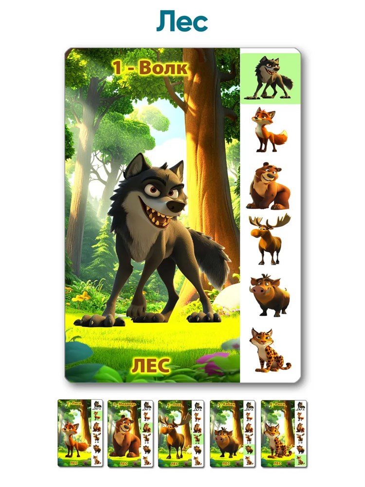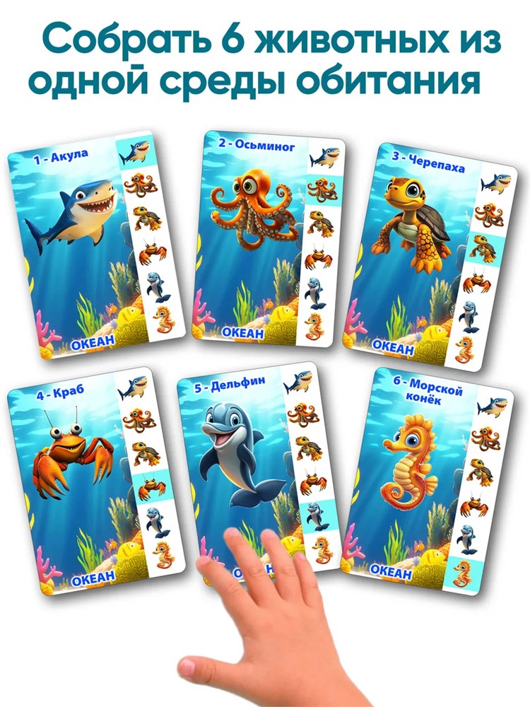 Игра-настолка для детей 4–8 лет познакомит с миром животных и их местами обитания.